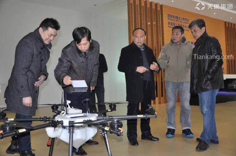 天康集團副總經(jīng)理閔玉均(右三)向政協(xié)委員們一行介紹天康鋰電池無人機的相關(guān)情況