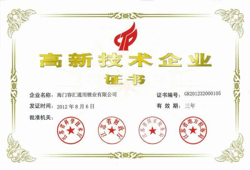 2012年8月6日,江蘇省科學技術廳為我公司頒發了高新技術企業證書,公司通過了高新技術企業認定,可喜可賀。