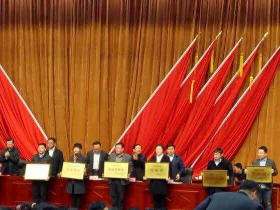 玉皇新能源總經(jīng)理趙成龍(右2)上臺(tái)領(lǐng)獎(jiǎng)