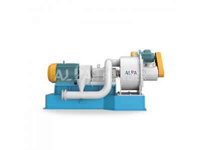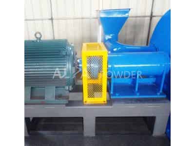 物料由加料系統(tǒng)均勻的送入粉碎室,受到高速旋轉(zhuǎn)的粉碎盤的強(qiáng)烈沖擊,同時受到離心力的作用,與粉碎齒圈發(fā)生碰撞,受到剪切、摩擦、碰撞等多種綜合力的作用,使物料粉碎,被粉碎的物料隨氣流運動到分級區(qū),通過變頻調(diào)節(jié)的分級輪,對粗細(xì)物料進(jìn)行分離,符合細(xì)度要求的產(chǎn)品隨氣流進(jìn)入旋風(fēng)收集器和除塵器收集,粗細(xì)料返回分級區(qū)二級粉碎。