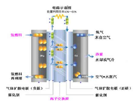 廣泛應用于電動汽車的燃料電池是一種稱為質子交換膜的燃料電池(PEMFC) ,它以純氫為燃料,以空氣為氧化劑,不經歷熱機過程,不受熱力循環限制,因此能量的轉換效率高,是普通內燃機熱效率的2~3倍。同時,它還具有噪音低、無污染、壽命長、啟動迅速、比功率大和輸出功率可隨時調整等特性,使得PEMFC非常適合用作交通工具的動力源。