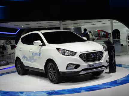 我們就拿車展上這臺早已量產的現代ix35 FuelCell為例,來看看采用燃料電池技術的純電動車有哪些顯著區別。從外觀上來看,使用燃料電池系統的車型并無明顯差異,不過相對一般電動車來說,燃料電池電動車型會與使用內燃機車型一樣設計有前進氣格柵,因為燃料電池的反應同樣需要“進氣”來與液氫作用產生電力。