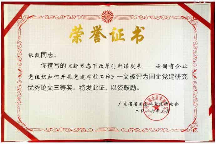 同時,各總支(支)部黨員干部從實際出發(fā),結(jié)合全面從嚴治黨和企業(yè)轉(zhuǎn)型升級的要求,科學探討黨建考核的新方式新方法,共撰寫論文8篇。經(jīng)公司黨委推薦上報3篇參加省屬企業(yè)黨建論文評選,經(jīng)評選,公司總部黨總支第二黨支部張凱同志報送的黨建研究論文《新常態(tài)下改革創(chuàng)新謀發(fā)展——論國有企業(yè)黨組織如何開展黨建考核》,在參評的196篇論文中入圍優(yōu)秀論文行列,榮獲三等獎及通報表揚。