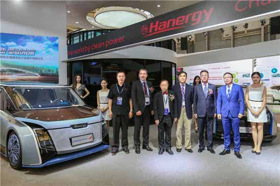 聯(lián)合國(guó)歐洲經(jīng)濟(jì)委員會(huì)秘書處可持續(xù)發(fā)展部部長(zhǎng)Mr.Walter Nissler,中國(guó)工程院院士、APEC-IOV專家委員會(huì)主席陳清泉院士、中國(guó)能源網(wǎng)首席研究員韓曉平、上海市國(guó)際展覽有限公司董事長(zhǎng)兼總裁顧春霆、漢能控股高級(jí)副總裁張彬、漢能控股副總裁高衛(wèi)民博士為漢能全太陽能動(dòng)力汽車揭幕