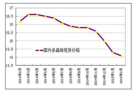 圖1 2014年2月-2015年2月國內(nèi)多晶硅現(xiàn)貨報價 單位:萬元/噸