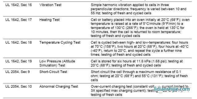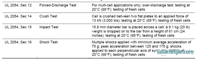 UL對于鋰離子電池相關測試要求