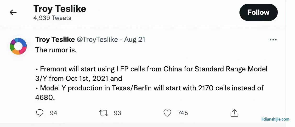 前兩天,特斯拉在公布第三季度的財報報告之時,也對外宣稱:“對于標準里程版車型所使用的電池,我們將在全球范圍內向磷酸鐵鋰電池過渡。”此番言論一出就引起外界的紛紛猜疑,特斯拉要擴大磷酸鐵鋰電池的覆蓋車型范圍?那這不就意味著特斯拉要尋找新的電池供應商伙伴。