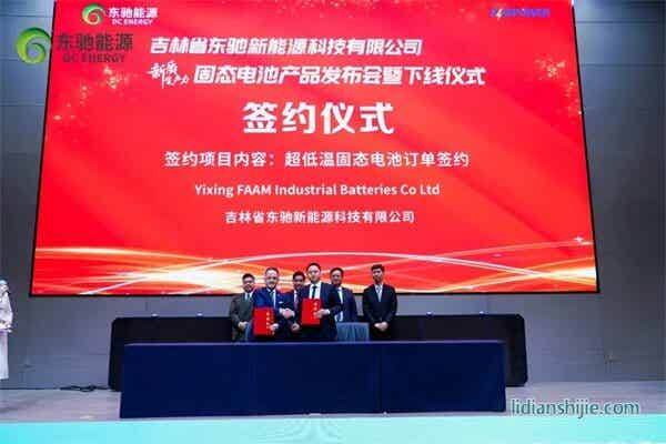 在產(chǎn)品下線儀式上,東馳能源分別與吉林省能源投資集團有限責任公司、西安西電電力系統(tǒng)有限公司簽訂了戰(zhàn)略合作協(xié)議;與Yixing FAAM Industrial Batteries Co Ltd簽訂了采購訂單;與鹽城達翔新能源有限公司簽訂了船用固態(tài)電池項目。