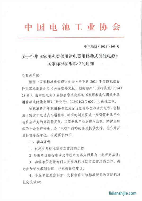 核心提示:家用和類似用途電器用移動式儲能電源國家標準參編單位的通知