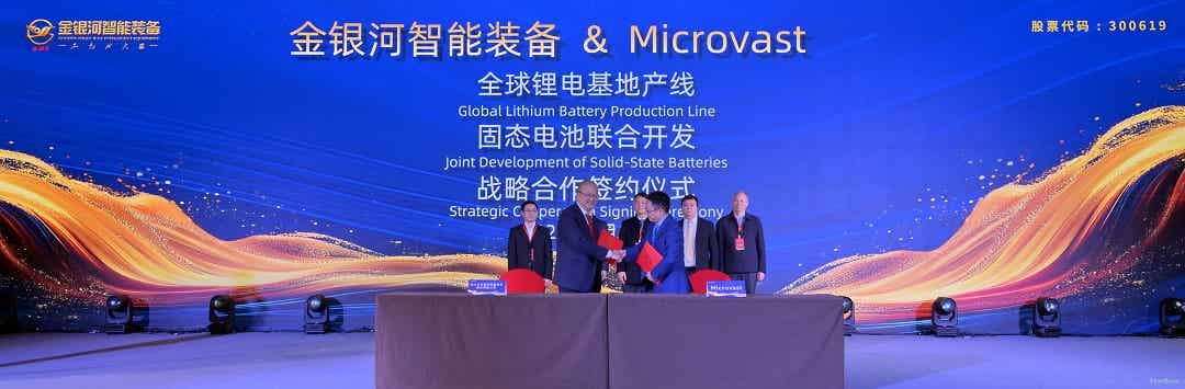 在科技大會(huì)上,金銀河與Microvast微宏集團(tuán)簽訂“全球鋰電基地產(chǎn)線和固態(tài)電池聯(lián)合開發(fā)”戰(zhàn)略合作協(xié)議,雙方將展開深度合作,攜手共繪全球合作和固態(tài)電池開發(fā)的新編章。