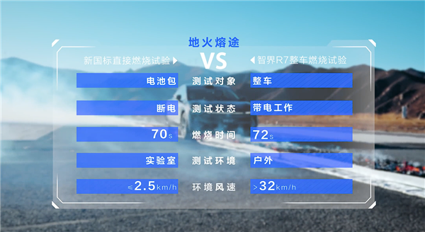 這條人工制造的火路長100m,寬0.8m,里面擺放上木炭,并用汽油引燃,表面溫度達(dá)到817℃,最終用時超過新國標(biāo)要求,電池包未起火未爆炸,車輛可正常啟動。