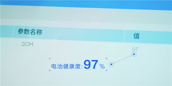 經(jīng)電腦檢測,電池包健康度仍高達(dá)97%,遠(yuǎn)超行業(yè)75.6%-89.3%的平均水平