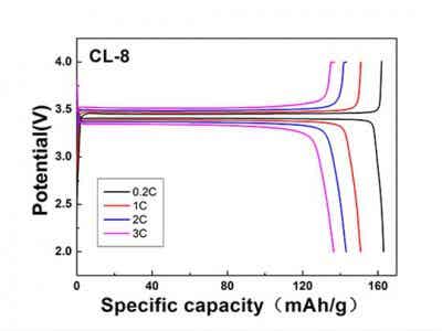 1、材料的扣電容量0.2C倍率比容量大于160mAh/g,1C倍率比容量大于150mAh/g;