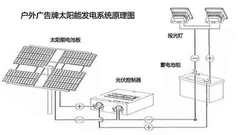 離網(wǎng)型戶外廣告牌太陽(yáng)能發(fā)電照明系統(tǒng)由太陽(yáng)能電池板、光伏控制器、蓄電池組及LED光源等主要部件構(gòu)成。白天將太陽(yáng)能電池板產(chǎn)生的不穩(wěn)定直流電,通過(guò)光伏控制器儲(chǔ)存到蓄電池,晚上再通過(guò)光伏控制器向負(fù)載(LED投光燈)放電,實(shí)現(xiàn)光伏開(kāi)啟,時(shí)控關(guān)閉,全自動(dòng)化運(yùn)行。