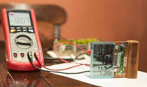 這是劍橋大學科學家保羅·邦貝利研發的一套利用植物來發電的系統,依靠一盆苔蘚,給一塊電子表供上了電。