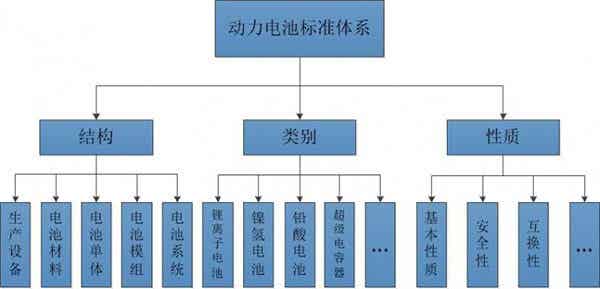 一般動(dòng)力電池標(biāo)準(zhǔn)體系可以從動(dòng)力電池的結(jié)構(gòu)、類別和相關(guān)性質(zhì)來(lái)分。動(dòng)力電池標(biāo)準(zhǔn)體系框架如圖所示。