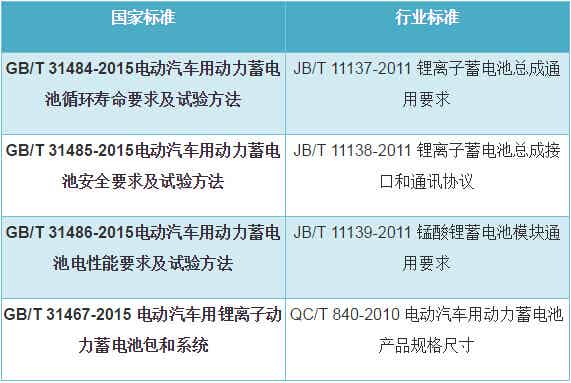 我國(guó)動(dòng)力電池標(biāo)準(zhǔn)情況