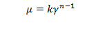 其中,v為涂布速度,取值為0.15 m/s;H為模頭與涂輥的間距,取值200×10-6 m時,則γ=750 s-1。涂布時,假定剪切速率基本不發生變化,鋰離子漿料是剪切稀釋的非牛頓流體,粘度μ滿足指數粘彈性規律,即可由式(5)表達:
