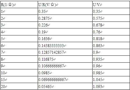 2、實驗原理:改變電阻箱的阻值,記錄R與U,