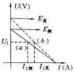 2、當路端電壓(即電壓表示數(shù))為 時,由于電流表示數(shù) 小于干路電流 ,所以(a)、(b)兩圖線出現(xiàn)了實驗圖10-4所示的差異.